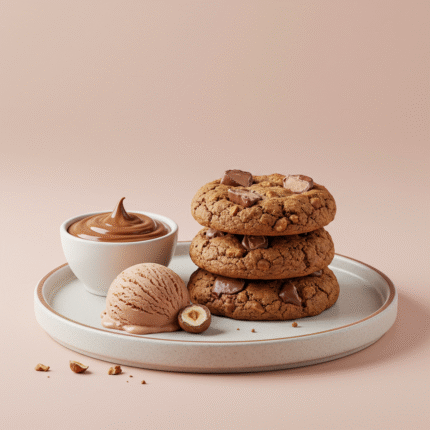 Dubai chocolate kunafa layered over warm cookie dough, finished with milk chocolate curls and pistachio sauce, served with a scoop of ice cream or gelato. (1050 kcal) Allergens:🌾(G), 🥛(D), 🥚(E), 🥜(N)